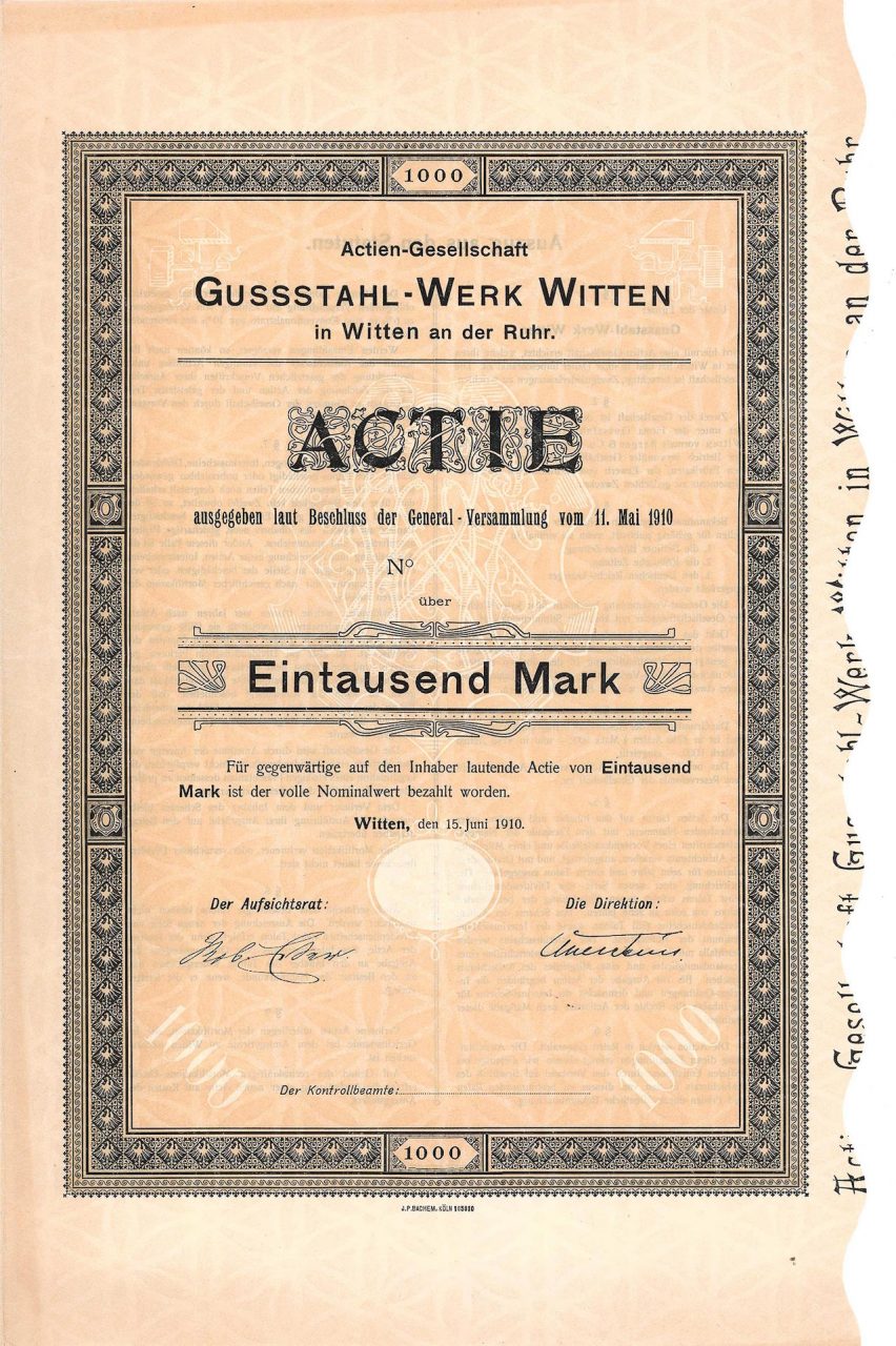 A-63198Gussstahl-Werk Witten-1Witten19101 azione da 1.000 MarchiR4 (251-500 pezzi)S4 (da 101 a 250 €)