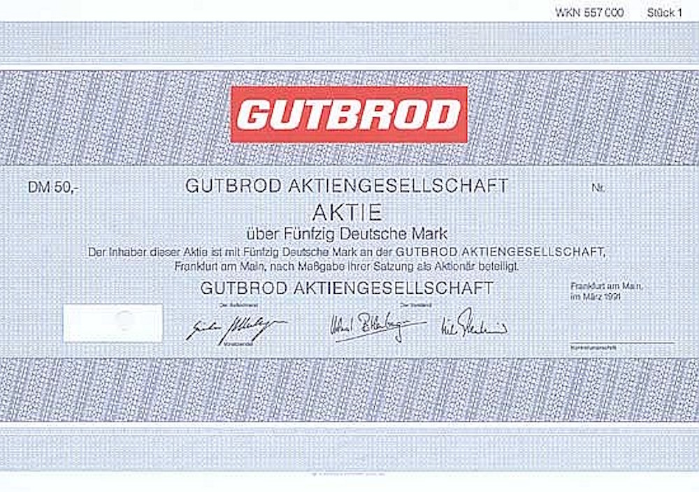 A-66978Gutbrod-1Francoforte19911 azione da 50 Marchi--