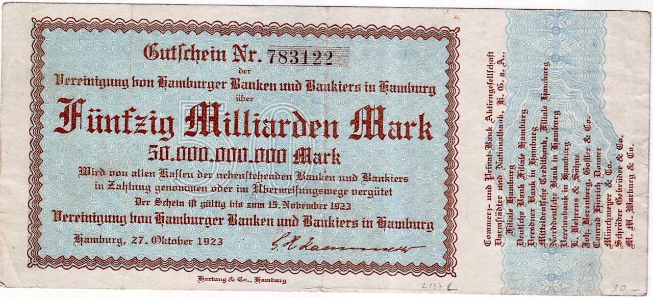 A-83271HAMBURG VEREINIGUNG HAMBURGER BANKEN UND BANKIERS-1Amburgo192350.000.000.000R3 (501-1000 pezzi)S3 (da 51 a 100 €)