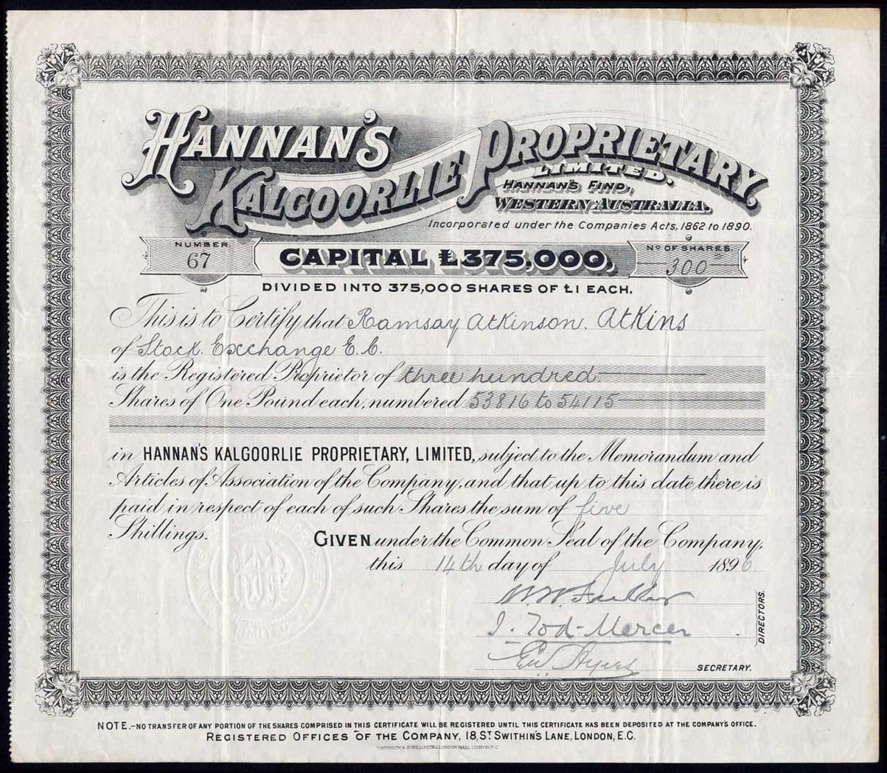 Hannan’s Kalgoorlie Proprietary Ltd