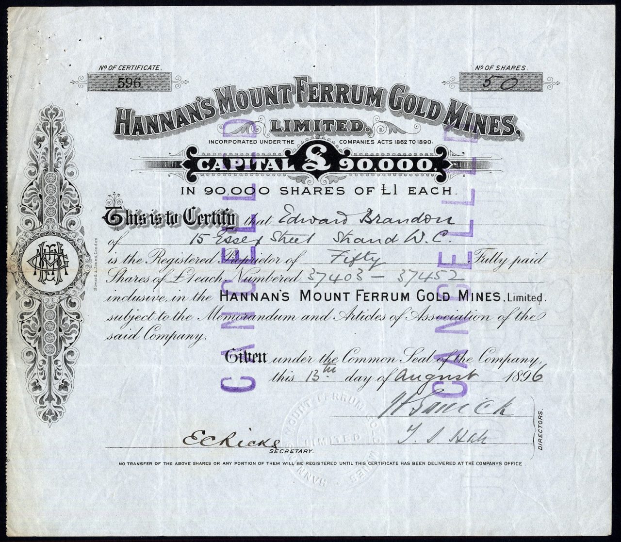 Hannan’s Mount Ferrum Gold Mines Ltd