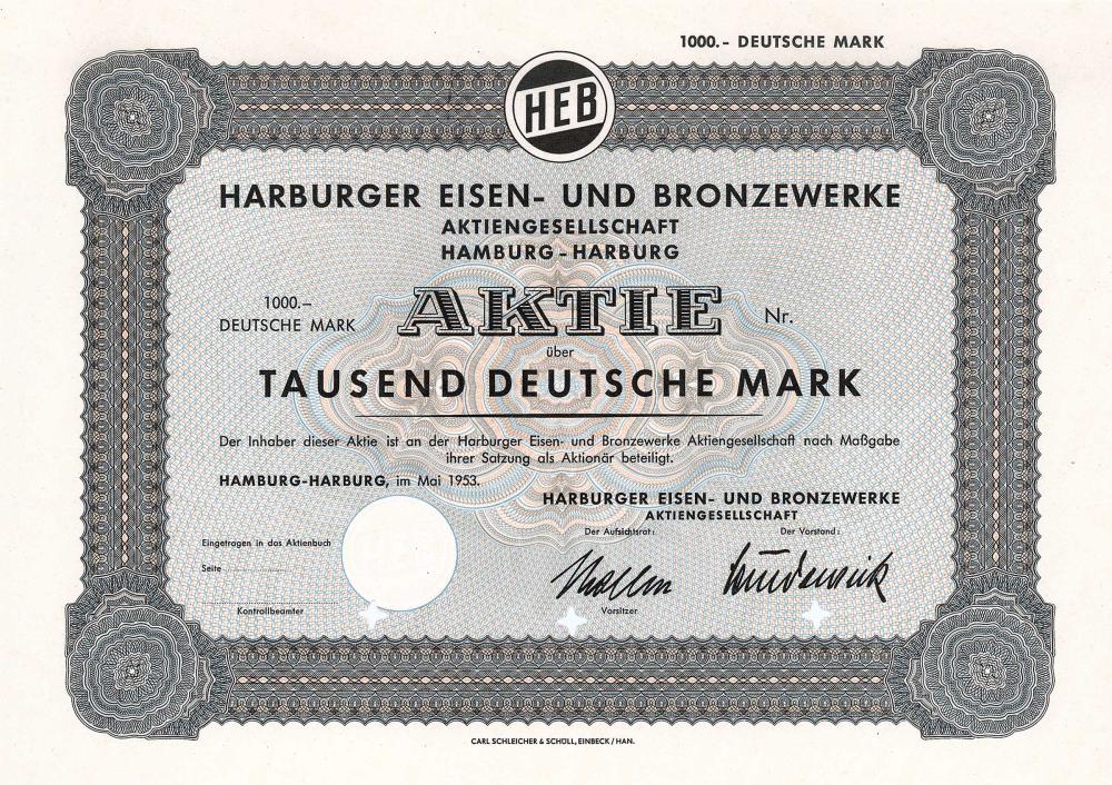 A-65152Harburger Eisen-und Bronzewerke-1Hamburg-Harburg19531 azione da 1.000 MarchiR4 (251-500 pezzi)S4 (da 101 a 250 €)