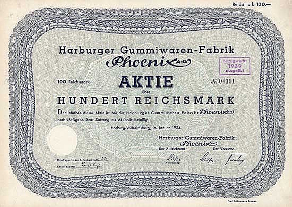 Fondata nel 1872 dalla fusione della Harburger Gummiwarenfabrik Menier, che esiste dal 1856, e la Gummiwarenfabrik J.N. Reithoffer a Vienna (la più antica fabbrica del suo genere nel continente) come “Vereinigte Gummiwaaren-Fabriken Harburg-Wien, già Menier-J.N. Reithoffer ". Nel 1922 Cambio di nome come sopra dopo la separazione dello stabilimento austriaco. Prodotti: pneumatici, scarpe in gomma, articoli tecnici, articoli in gomma chirurgica, palloni da gioco e sportivi, tessuti gommati per l'industria dell'abbigliamento. Nel 1952, Firestone Tire & Rubber Co., Akron / Ohio, ottenne una partecipazione del 25%, in cambio a Phoenix fu consentito di utilizzare tutti i brevetti Firestone senza restrizioni. Nel 1961 ai fini dell'ampliamento, acquisizione del... Altro