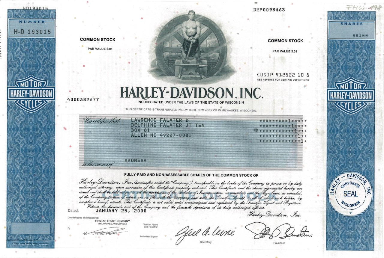 La rinomata casa motociclistica statunitense ebbe origine nel 1902 a Milwaukee quando i giovani William Harley e Arthur Davidson costruirono un prototipo di bicicletta motorizzata. L'azienda fu costituita nel 1903 nel garage di Davidson e solo tre anni più tardi fu costruito il primo vero e proprio stabilimento per la produzione in serie. Nel 1907 fu fondata ufficialmente la Harley - Davidson Motor Company che tra l'altro iniziò la vendita - che prosegue tuttora - delle prime motociclette alle forze di polizia statunitensi.