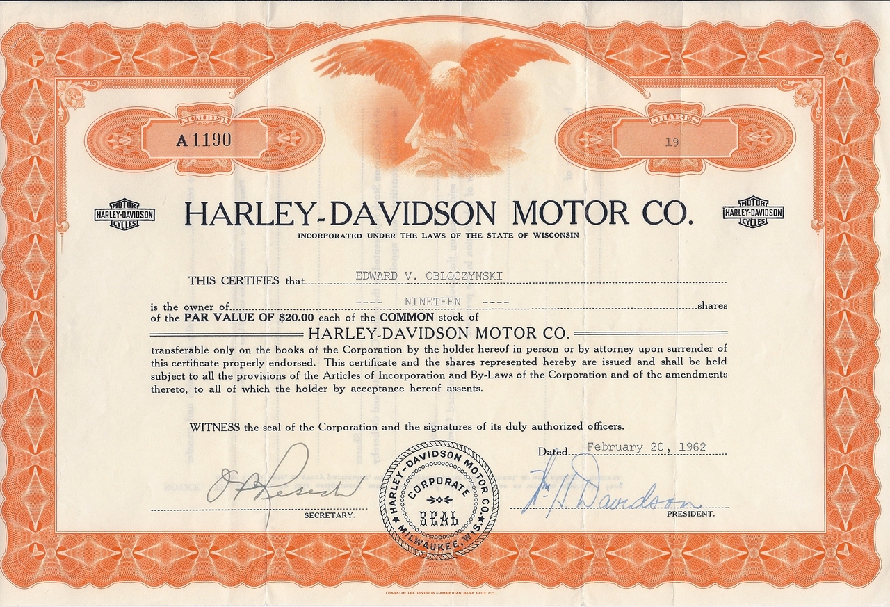 La rinomata casa motociclistica statunitense ebbe origine nel 1902 a Milwaukee quando i giovani William Harley e Arthur Davidson costruirono un prototipo di bicicletta motorizzata. L’azienda fu costituita nel 1903 nel garage di Davidson e solo tre anni più tardi fu costruito il primo vero e proprio stabilimento per la produzione in serie. Nel 1907 fu fondata ufficialmente la Harley – Davidson Motor Company che tra l’altro iniziò la vendita – che prosegue tuttora – delle prime motociclette alle forze di polizia statunitensi.