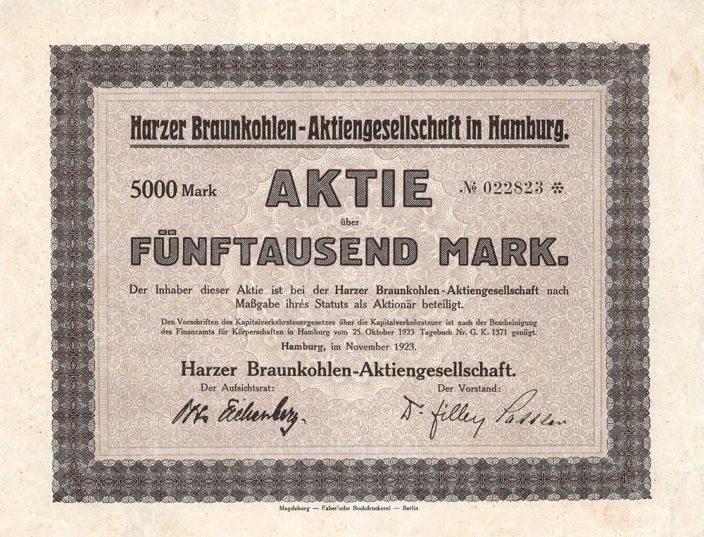 Fondata nel 1923. Scopo era l’acquisizione di Kuxen dalla miniera di lignite consolidata prussiana di 1.000 parti “Trade Union Ernst” a Oldenrode-Düserode (distretto di Osterode), nonché la gestione di impianti di lignite e altre società minerarie. In liquidazione dal 1925, cancellata nel 1929.