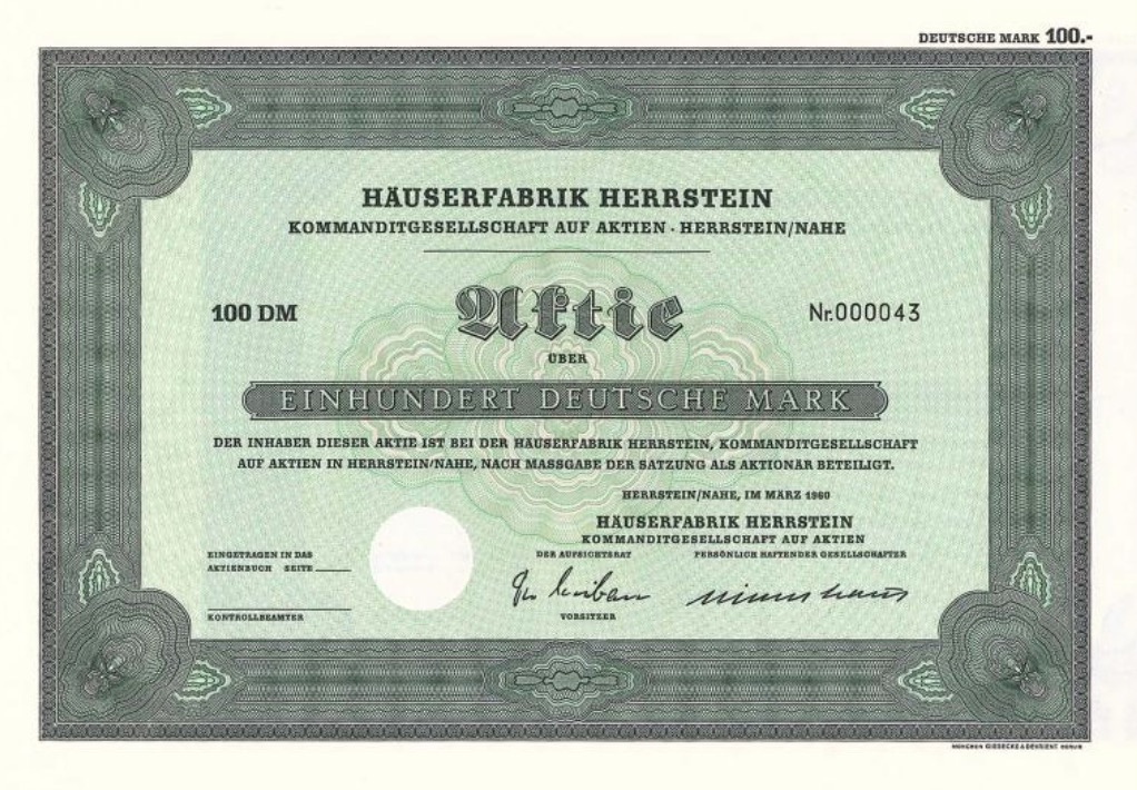 Fondata nel 1959. Fabbricazione, consegna e assemblaggio di edifici prefabbricati per scopi industriali e residenziali. Quindi qui abbiamo la prima casa prefabbricata tedesca molto prima che Neckermann rendesse finalmente popolare questa idea. Sfortunatamente l’attività arrivò a Herrstein, Hauptstr.