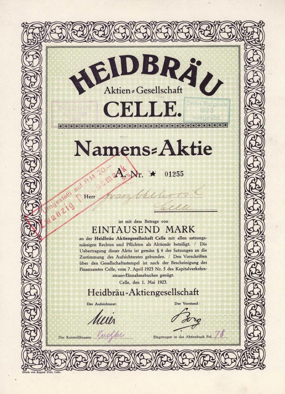 Fondata nel 1923 per continuare il birrificio precedentemente gestito da una GmbH con lo stesso nome. La maggior parte degli azionisti erano locandieri e proprietari di hotel di Celle e dintorni. Andò in bancarotta nel 1927.