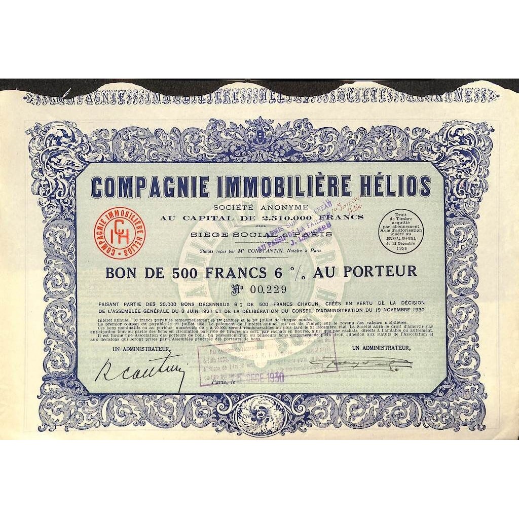 A-51778Helios compagnie immobiliere-1 Parigi1930500 FranchiR1 (Più di 5000 pezzi)S1 (da 0 a 25 €)