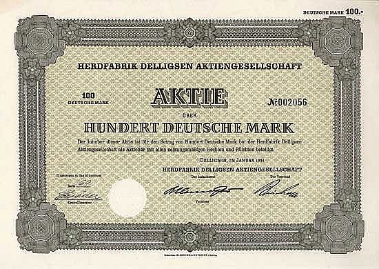 Fondata alla fine del 1933 dagli obbligazionisti della fabbrica di macchine e veicoli Alfeld-Delligsen AG, fallita nel 1931 (fondata nel 1899 come “Bernburger Maschinenfabrik”, la sede fu trasferita ad Alfeld nel 1915 e ad Hannover nel 1923. Programma di produzione: macchine per l’industria della carta e chimica, stufe, forni, carri). Aperta originariamente nel 1904, la fabbrica di stufe Delligsen aveva anche un impianto di smaltatura, una fonderia di ghisa grigia e un impianto di nichelatura. La fabbrica, che fu chiusa dopo l’invasione alleata nel 1945, cadde vittima dello smantellamento, ma alla fine del 1946 tornò a funzionare a pieno regime. L’AG, quotata ad Hannover, fallì nel 1959.