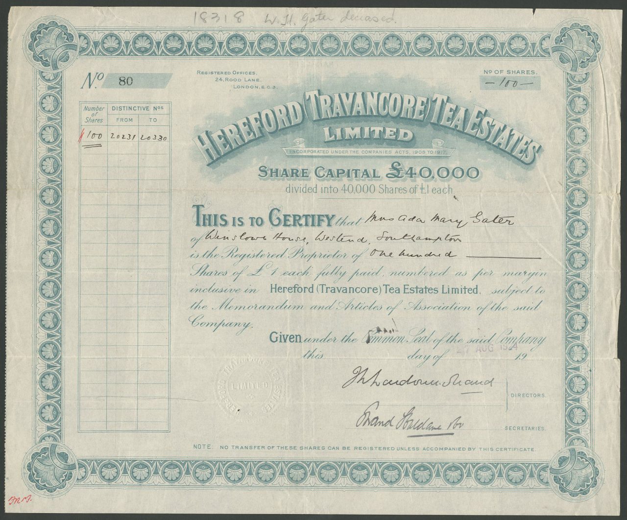 Hereford (Travancore) Tea Estates Ltd