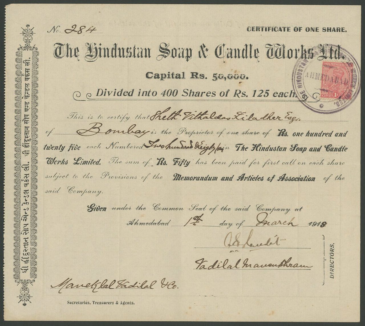 Registrato sotto gli Indian Companies Acts. Capitale 50.000 rupie in azioni di 125 rupie.
