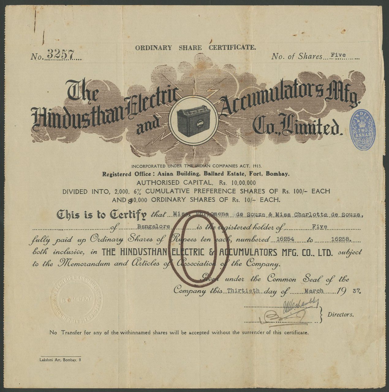 Incorporato sotto l'Indian Companies Act 1913.