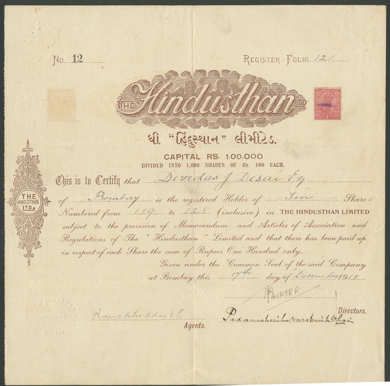 Capitale 1.000.000 di rupie in 1.000 azioni ordinarie da 100 rupie.