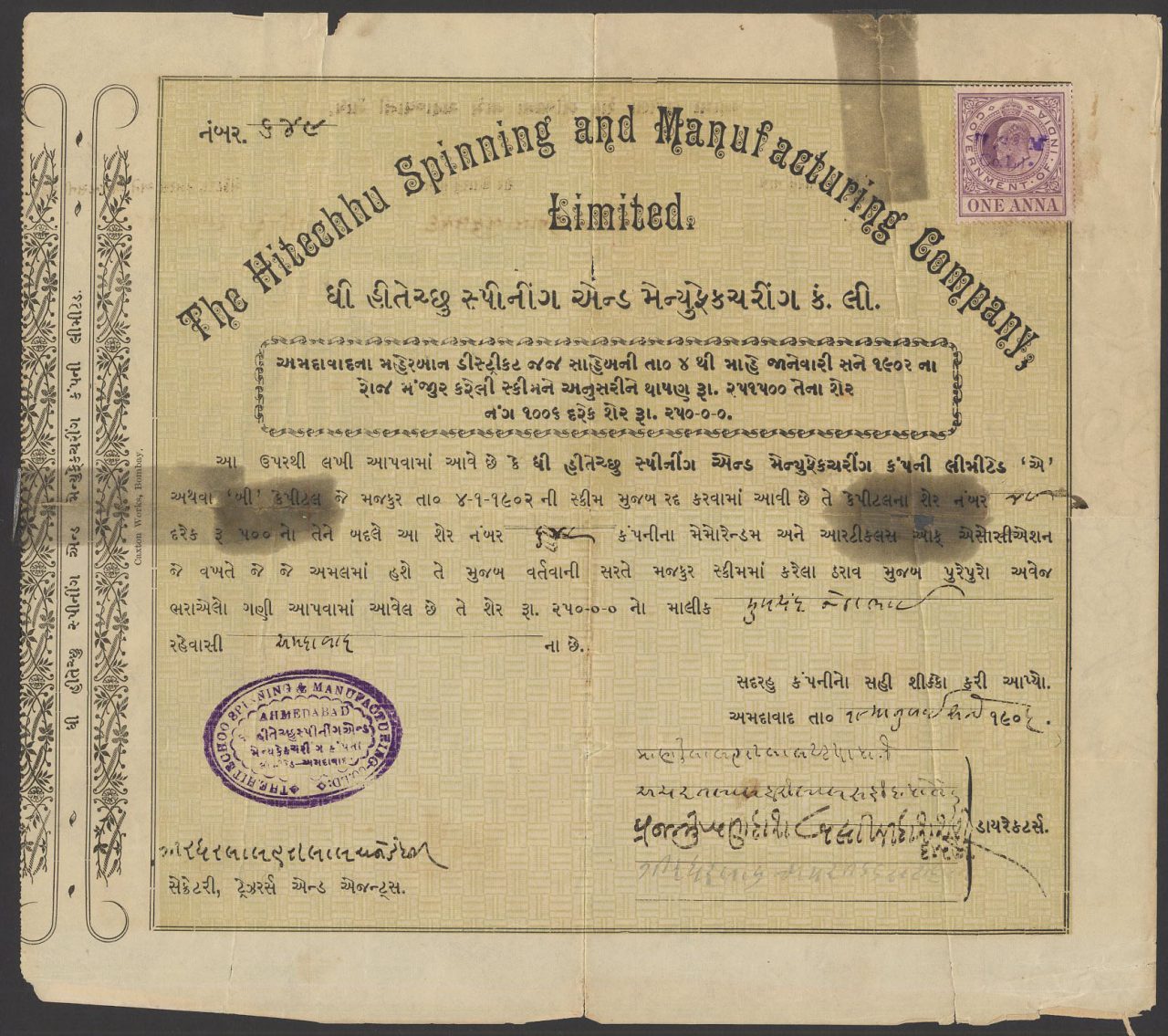 Incorporato sotto gli Indian Companies Acts.