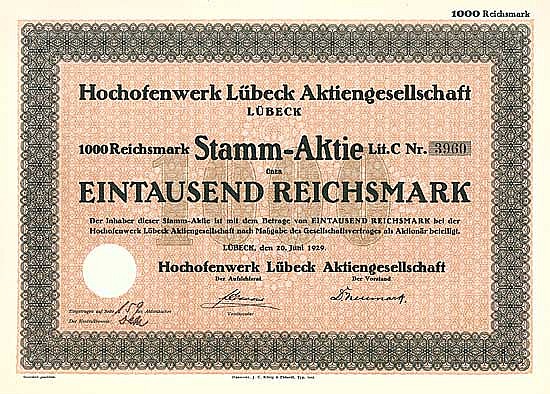 Fondata nel 1905. Produzione di ghisa, gestione di un cementificio, estrazione e raffinazione del rame, nonché una fabbrica di merci in calcestruzzo. Il consiglio di sorveglianza è stato presieduto da Friedrich Flick fino alla fine della guerra. Nel 1954 ridenominazione in Metallhüttenwerke Lübeck AG, subito dopo trasformata in GmbH e messa in liquidazione. Nel 1959 trasferimento del patrimonio al principale azionista “Gesellschaft für Montaninteressen mbH” a Lubecca.