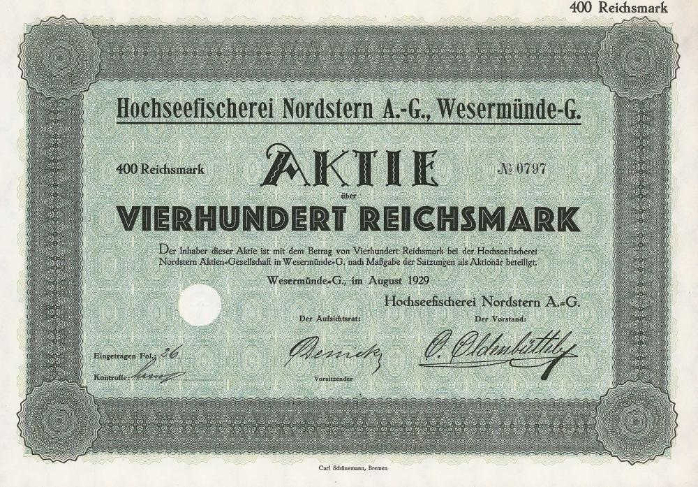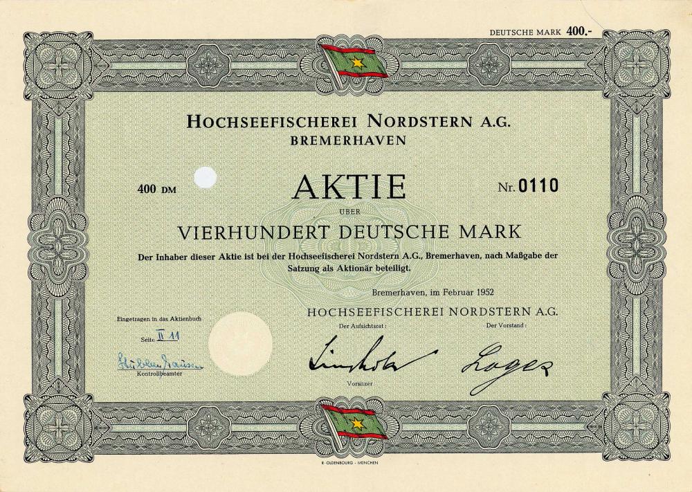 Fondata nel 1905 per catturare e sfruttare il pesce di mare. Della flotta di 12 piroscafi, solo 3 navi rimasero dopo la seconda guerra mondiale. Nel 1985 Co-fondazione dell'Unione tedesca della pesca. Nel 1988 cambio di nome in Nordstern Lebensmittel AG e integrazione delle capacità di congelamento, lavorazione e commercializzazione al di fuori del settore della pesca. Nel 1997 cambio di nome nell'odierna Frosta AG. Produttore di alimenti surgelati a marchio FRoSTA.