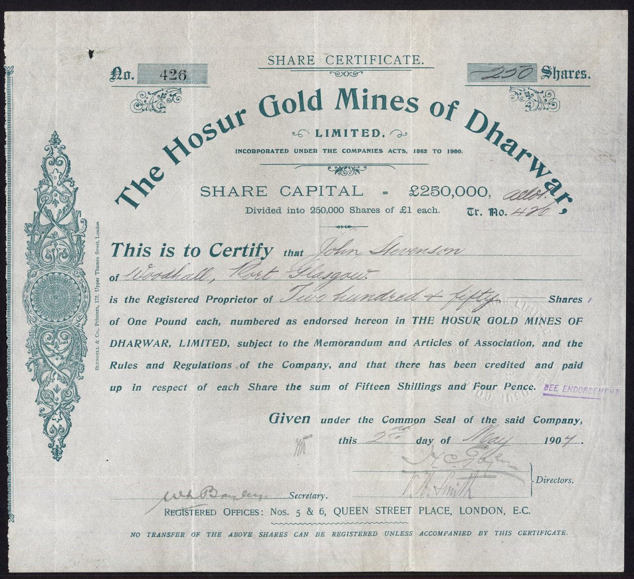Hosur Gold Mines of Dharwar, Ltd