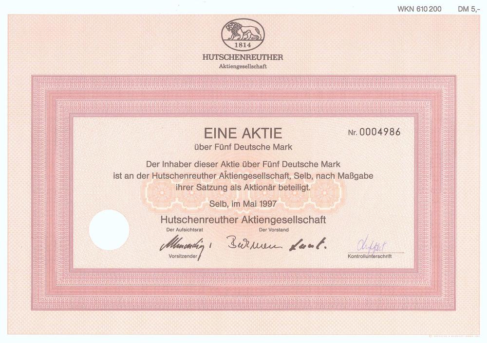 A-65173Hutschenreuther-1Selb19971 azione da 5 MarchiR2 (1001-5000 pezzi)S2 (da 26 a 50 €)