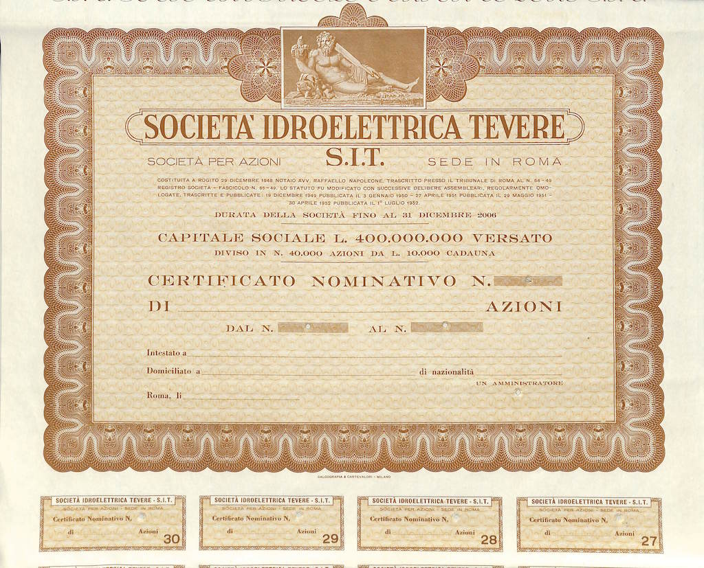 La società, fondata nel 1948 e sciolta nel 1965, fece progettare e costruire dall’architetto Gaetano Minnucci (1896-1980) la centrale idroelettrica di Castel Giubileo, tuttora esistente, che consiste in un viadotto sul Tevere con diga annessa per controllare il flusso dell’acqua del fiume.
