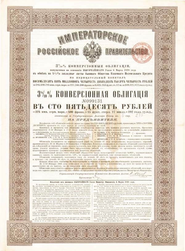 Imperial Government of Russia, 3 8/10% Conversion Bond