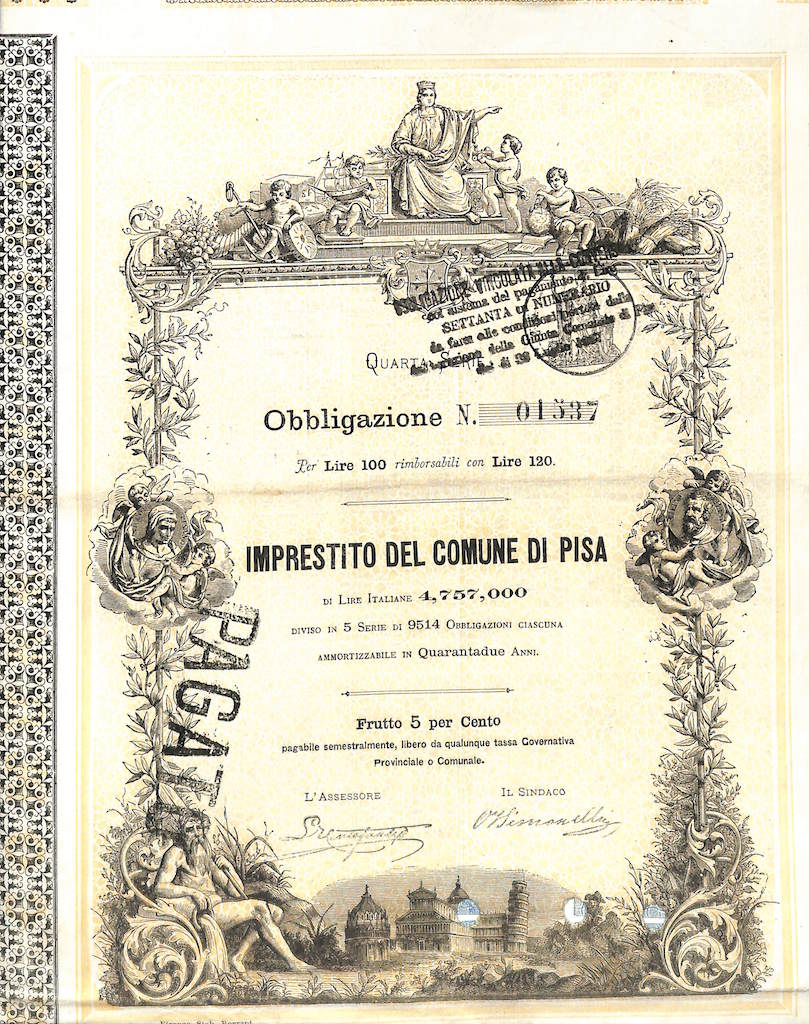 Secondo una leggenda Pisa sarebbe stata fondata da alcuni mitici profughi troiani provenienti dall’omonima città greca di Pisa, posta un tempo nella valle del fiume Alfeo, nel Peloponneso.