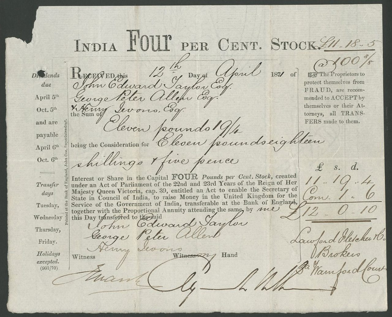 A-41823India: 1860 5% Stock-1India1874inscribed stock receiptR1 (Più di 5000 pezzi)S1 (da 0 a 25 €)