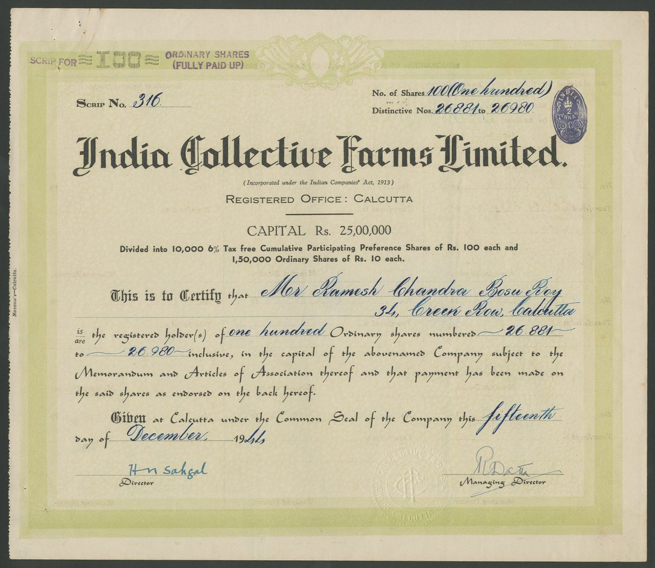 Capitale 25.00.000 rupie in 1.50.000 azioni ordinarie da 10 rupie e 10.000 azioni privilegiate cumulate del 6% da 100 rupie.