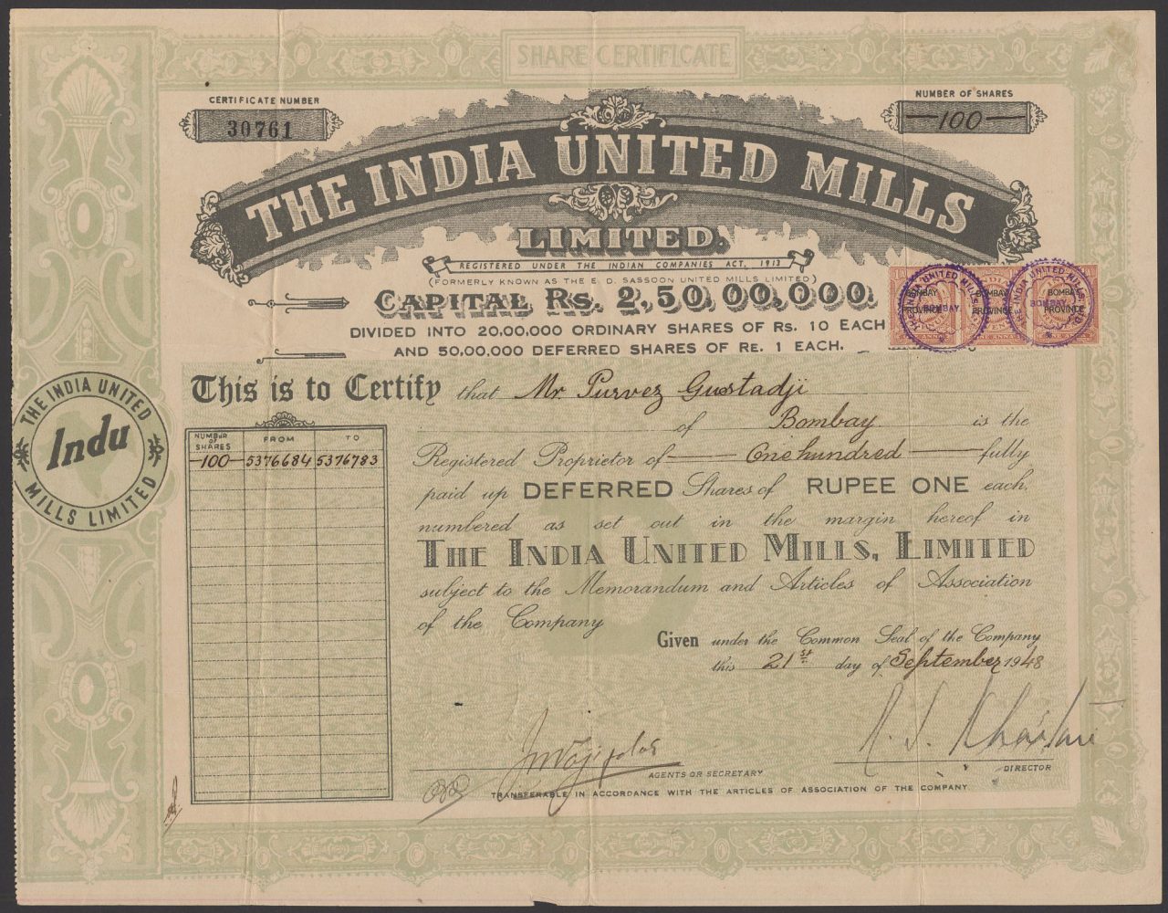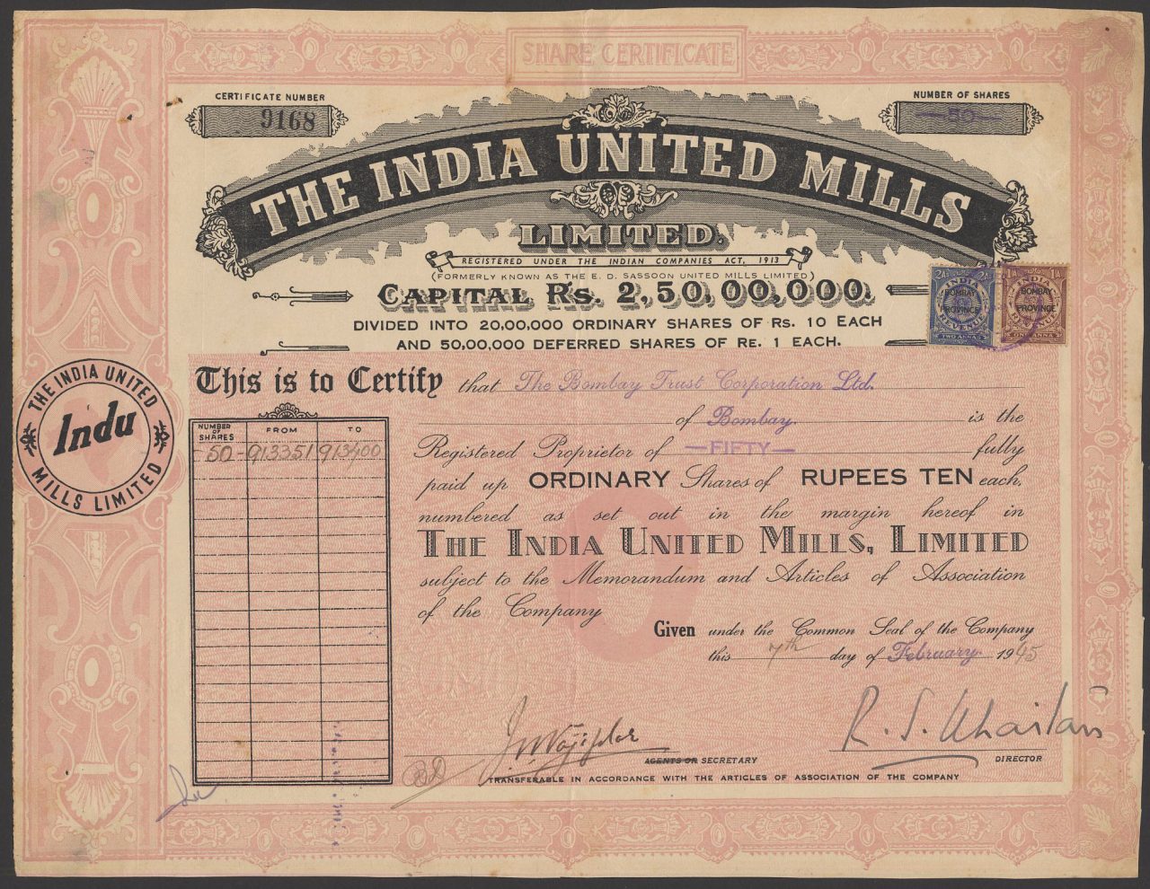 A-41810India United Mills Limited-1British India1945ordinary sharesR1 (Più di 5000 pezzi)S1 (da 0 a 25 €)