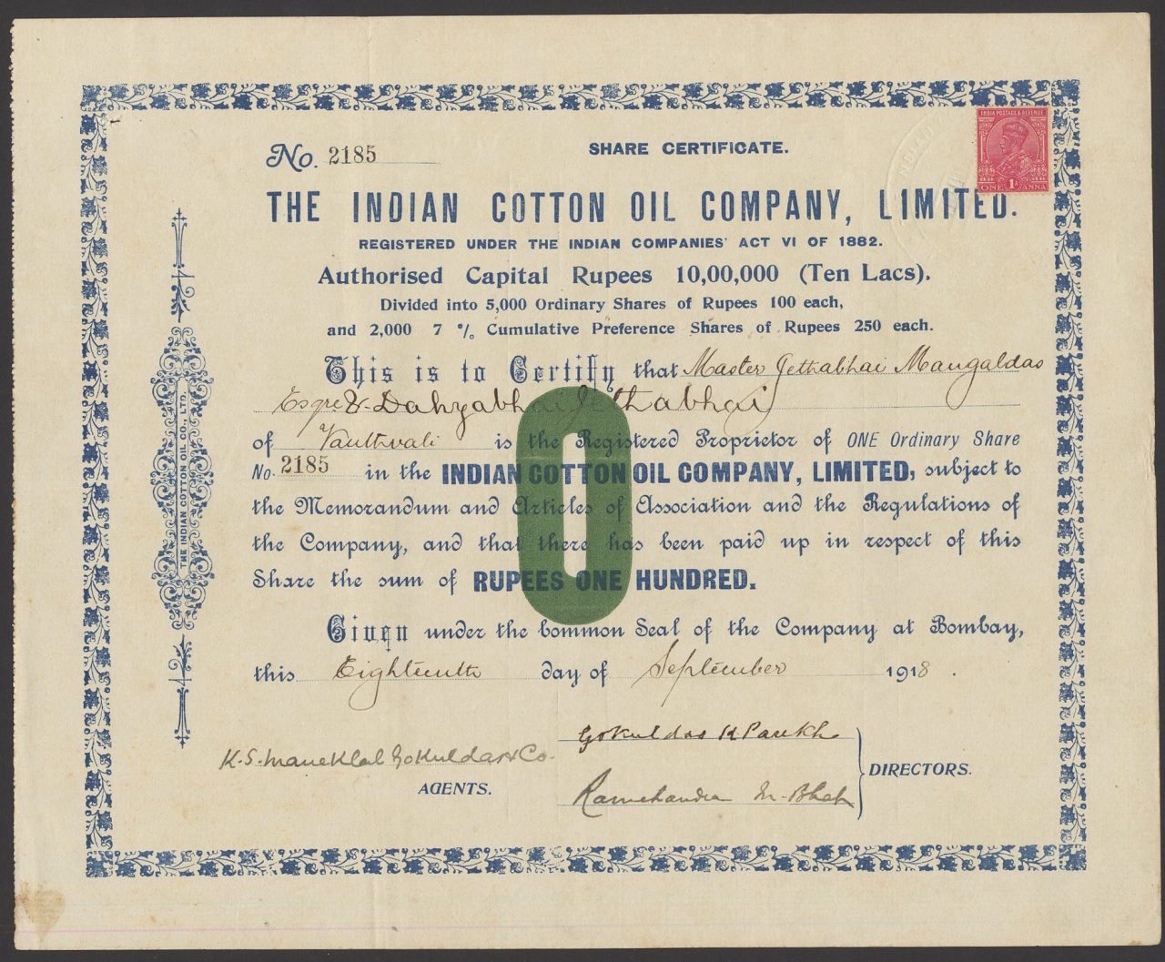 Incorporato sotto l'Indian Companies Act 1882.