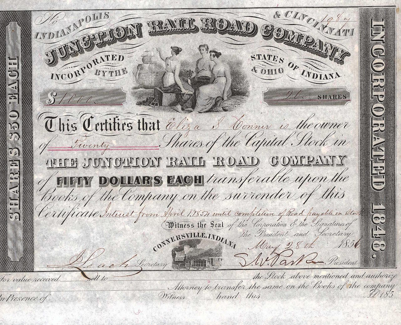 A-59098Indianapolis & Cincinnati Junction Rail Road Company-1Connersville1856VariabileR4 (251-500 pezzi)S4 (da 101 a 250 €)