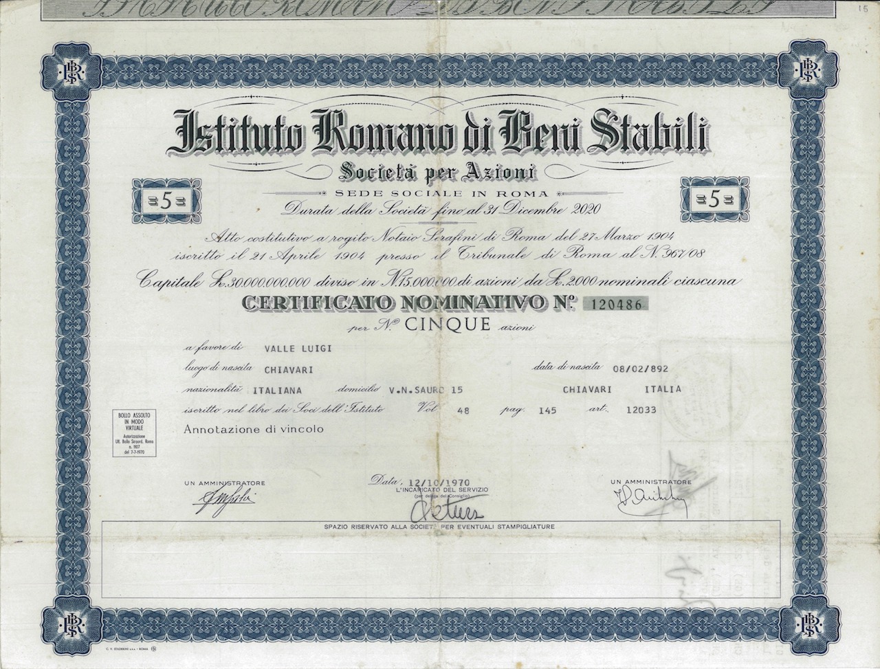 Costituzione: 27 marzo 1904