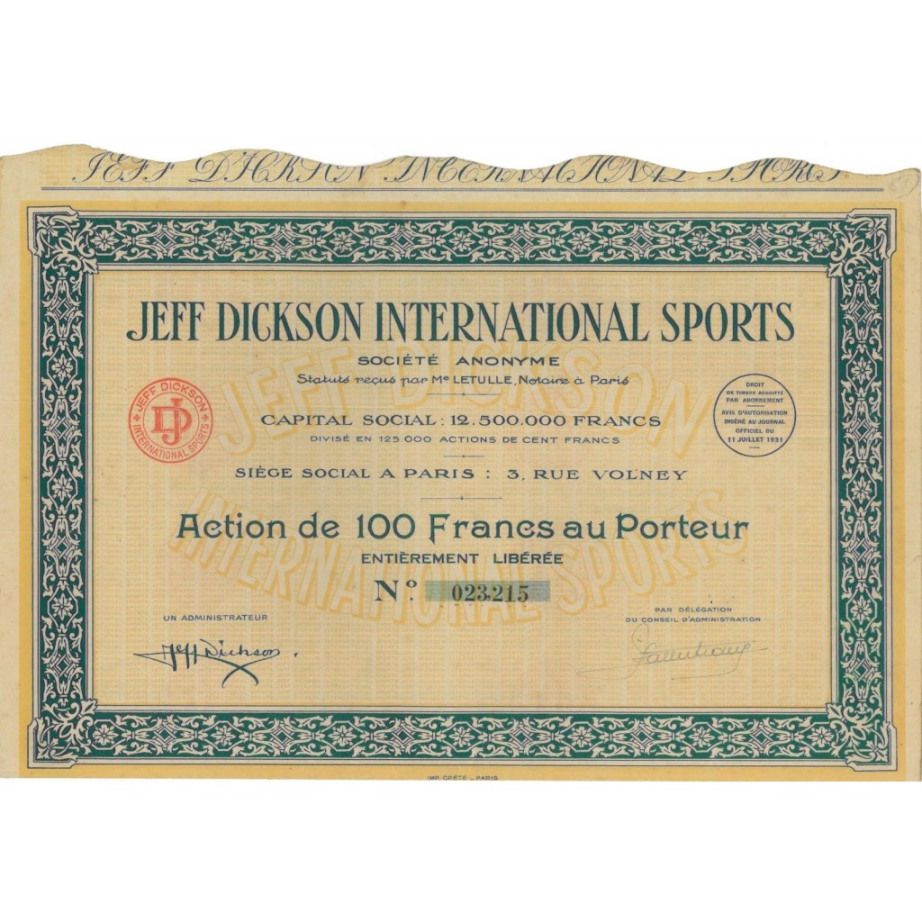 Azione di 100 Franchi al portatore