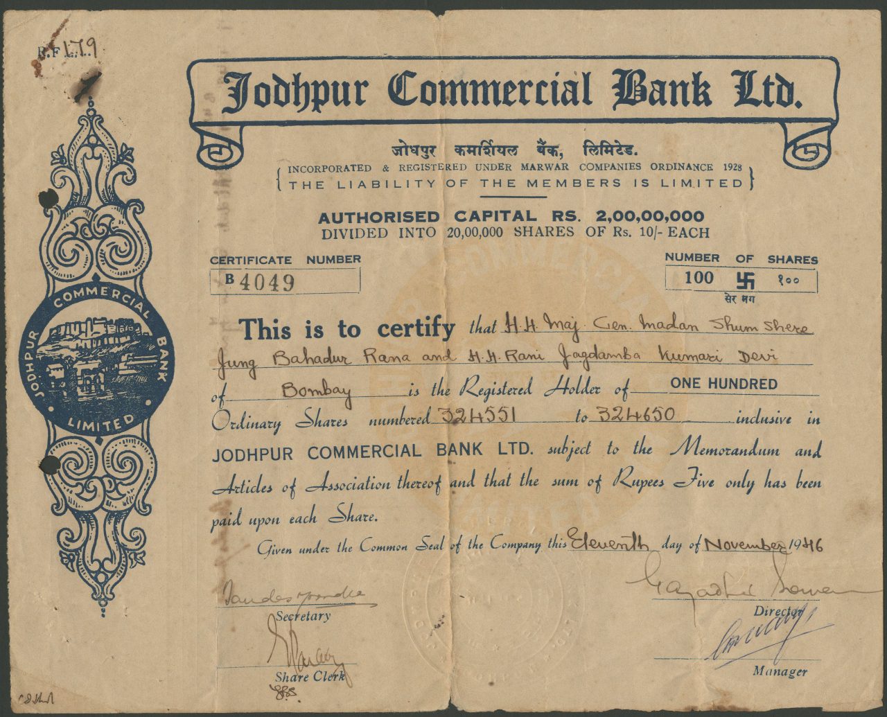 Incorporato ai sensi dell’ordinanza Marwar State Companies 1928.