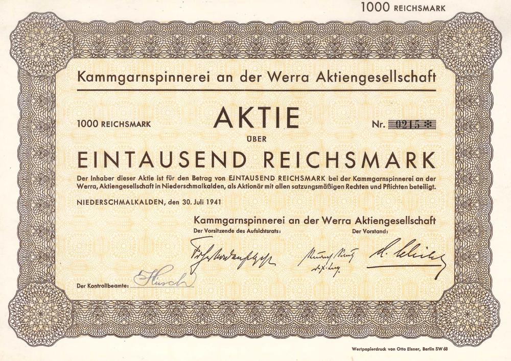 La spettacolare bancarotta del North Wool Group a metà del 1931 fu la causa del crollo della Darmstadt e della Banca nazionale (DANAT-Bank), che provocò la peggiore crisi bancaria della storia tedesca in una reazione a catena. Molte parti del North Wool Group sono state poi proseguite in compagnie di soccorso legalmente indipendenti, tra cui la filanda pettinata Wernshausen con i suoi circa 800 dipendenti. Nel 1937 acquisì anche la nuova filanda pettinata Glücksbrunn GmbH, Schweina, che in precedenza apparteneva anche al gruppo della lana Nord. La filanda tradizionale fu originariamente fondata nel 1832. VEB ai tempi della RDT, dopo la caduta della “filanda pettinata della Werra GmbH”. A est della Werra al passaggio all’ex distretto Wernshausen di Niederschmalkalden, la fabbrica fu completamente ricostruita nel 1920-22 su progetto di Karl Behlert. Dopo la chiusura della filanda in lana pettinata nel 1992, l’ensemble è stato elencato come monumento industriale unico nella Turingia meridionale nel 2002. Particolare valore culturale è attribuito all’edificio amministrativo con attrezzature in gran parte originali (tra cui finestre di vetro al piombo con motivi di lavorazione della lana). Dopo l’incorporazione di Wernhausen il 1 ° dicembre 2008, la città di Schmalkalden divenne il proprietario dell’area ex fabbrica e, contro la resistenza della conservazione dei monumenti storici, demolì questo monumento culturale. L’edificio della fabbrica fu fatto saltare in aria l’1.8.2009.