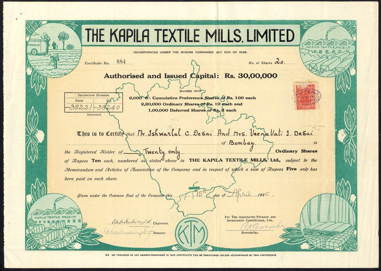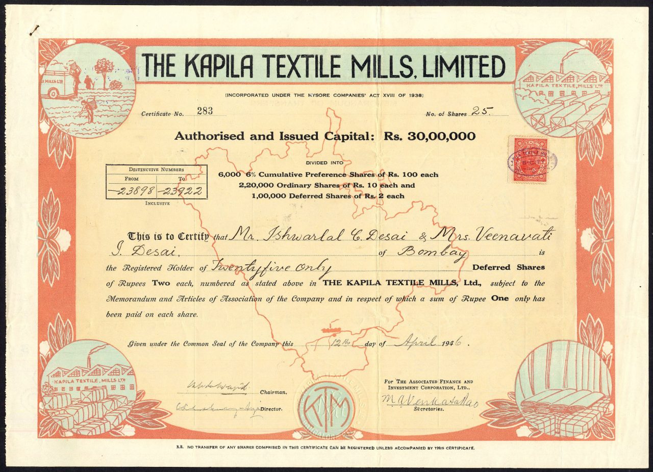 Incorporato ai sensi del Mysore Companies Act del 1938. Capitale 30.00.000 rupie in 2.20.000 azioni ordinarie da 10 rupie, 6.000 azioni privilegiate da 100 rupie e 1.00.000 azioni differite da 2 rupie.