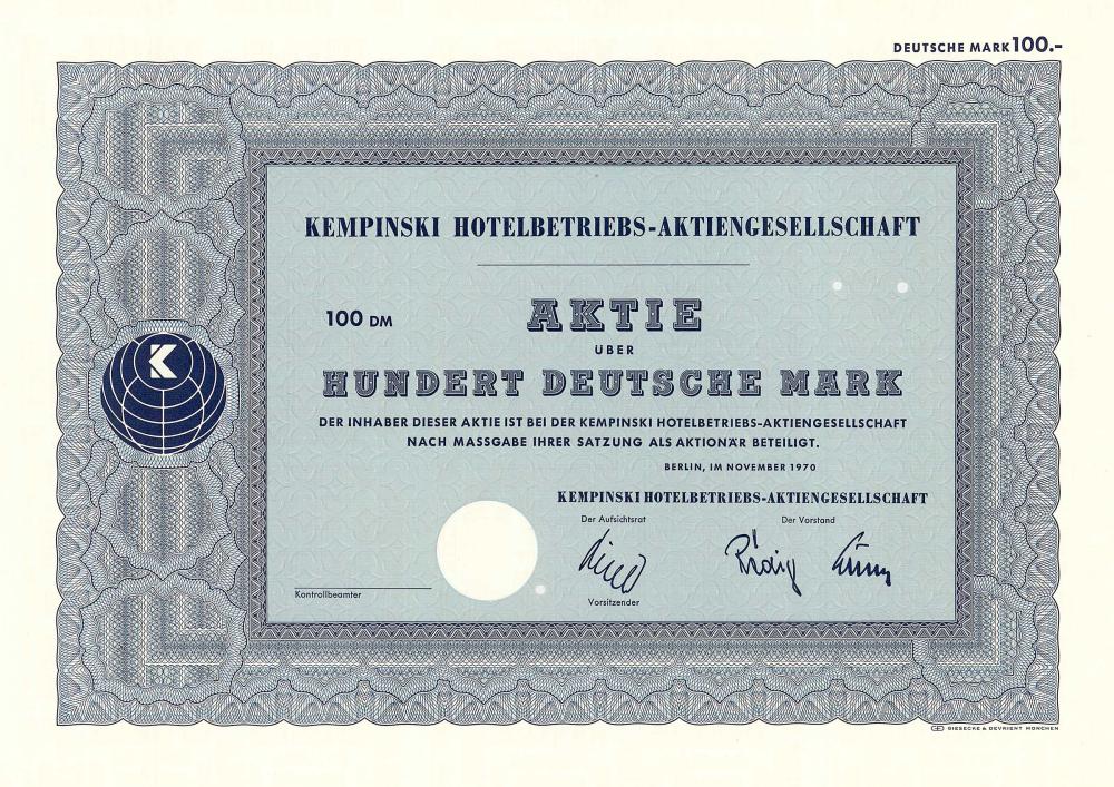 Il “capostipite” Berthold Kempinski fondò un’enoteca nella sua città natale vicino a Poznan nel 1862, si trasferì a Berlino con l’annuncio dell’Impero tedesco nel 1872 e aprì uno snack bar con una sala di degustazione di vini a Friedrichstrasse. Il complotto di Kurfürstendamm 27, che in precedenza era stato “arianizzato” dai nazisti, fu ripagato dal nipote di Kempinski e vi costruì “Hotel Kempinski” nel 1951, che vendette a Hotelbetriebs-AG nel 1953. Fu fondato nel 1897 per acquisire il Centralhotel. Nel 1904 acquisto dell’Hotel Bristol. Nel 1910 acquisizione del Café e dell’Hotel Bauer. 1911 Acquisizione del Grand Hotel Bellevue e del Tiergartenhotel, insieme al grossista di vini Emil Metzger. A ciò si aggiungono la pasticceria di Kranzler, l’Hotel Kaiserhof e il Baltico. Nel 1927 ribattezzato Hotelbetriebs-AG (Bristol, Kaiserhof, Bellevue, Baltic, Centralhotel). Oltre al “Kempi” e al “Adlon” a Berlino, l’elegante “Quattro stagioni” a Monaco di Baviera, dove fu successivamente trasferita la sede amministrativa. Il più antico gruppo europeo di hotel di lusso ora gestisce 79 hotel a cinque stelle in 31 paesi. Nel 2002 spreme i restanti piccoli azionisti con il nuovo principale azionista (la gestione patrimoniale della famiglia reale thailandese), oggi la maggioranza spetta agli sceicchi del Bahrein.