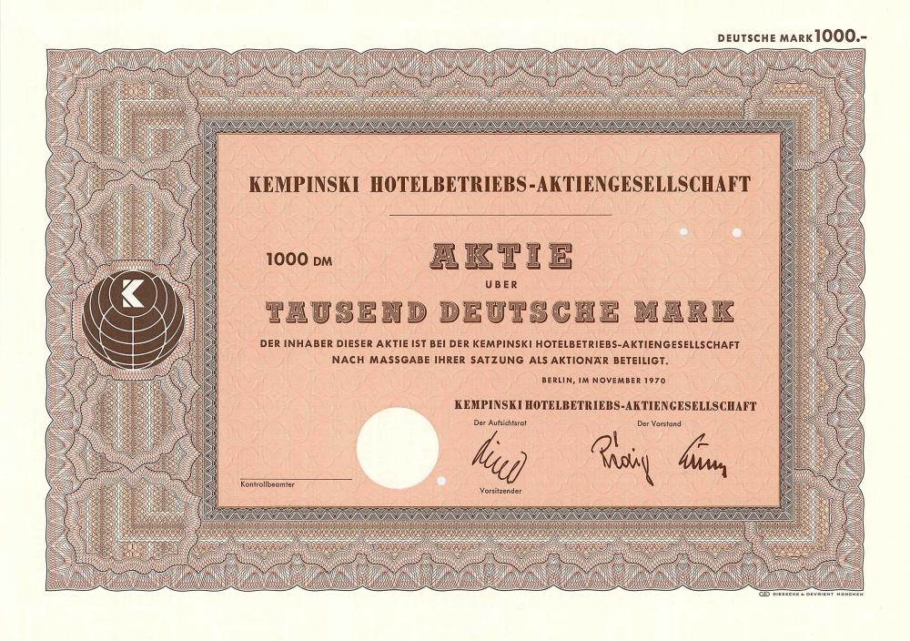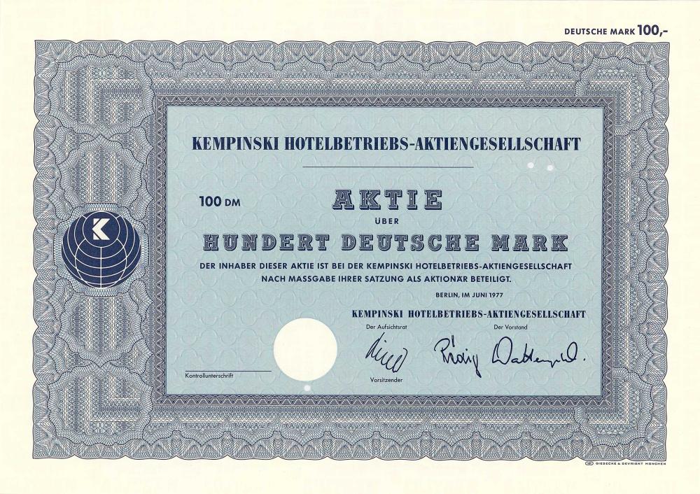Il “capostipite” Berthold Kempinski fondò un’enoteca nella sua città natale vicino a Poznan nel 1862, si trasferì a Berlino con l’annuncio dell’Impero tedesco nel 1872 e aprì uno snack bar con una sala di degustazione di vini a Friedrichstrasse. Il complotto di Kurfürstendamm 27, che in precedenza era stato “arianizzato” dai nazisti, fu ripagato dal nipote di Kempinski e vi costruì “Hotel Kempinski” nel 1951, che vendette a Hotelbetriebs-AG nel 1953. Fu fondato nel 1897 per acquisire il Centralhotel. Nel 1904 acquisto dell’Hotel Bristol. Nel 1910 acquisizione del Café e dell’Hotel Bauer. 1911 Acquisizione del Grand Hotel Bellevue e del Tiergartenhotel, insieme al grossista di vini Emil Metzger. A ciò si aggiungono la pasticceria di Kranzler, l’Hotel Kaiserhof e il Baltico. Nel 1927 ribattezzato Hotelbetriebs-AG (Bristol, Kaiserhof, Bellevue, Baltic, Centralhotel). Oltre al “Kempi” e al “Adlon” a Berlino, l’elegante “Quattro stagioni” a Monaco di Baviera, dove fu successivamente trasferita la sede amministrativa. Il più antico gruppo europeo di hotel di lusso ora gestisce 79 hotel a cinque stelle in 31 paesi. Nel 2002 spreme i restanti piccoli azionisti con il nuovo principale azionista (la gestione patrimoniale della famiglia reale thailandese), oggi la maggioranza spetta agli sceicchi del Bahrein.