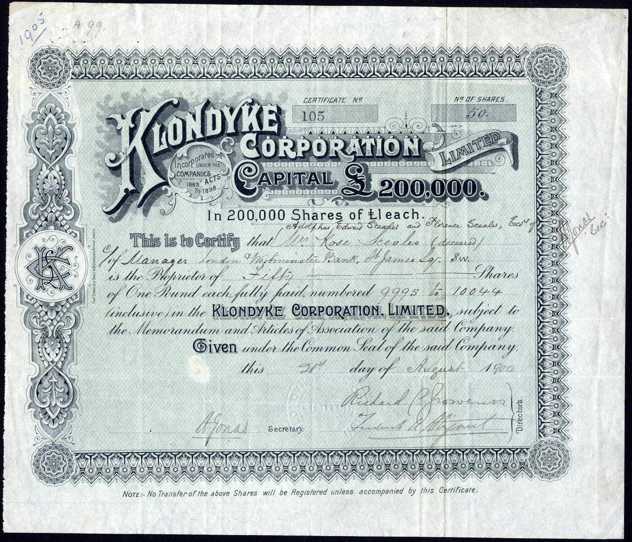 Registrato nel 1900. Dissolto <1916. Numero società 65267