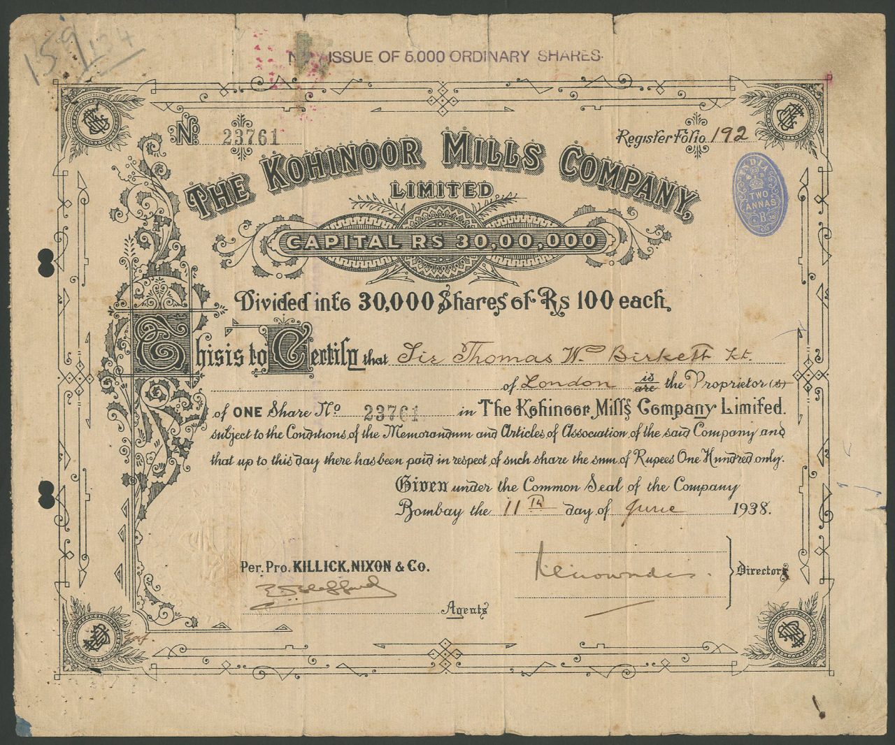Incorporato sotto gli Indian Companies Acts. Capitale 30.000.000 di rupie in 30.000 azioni di 100 rupie.