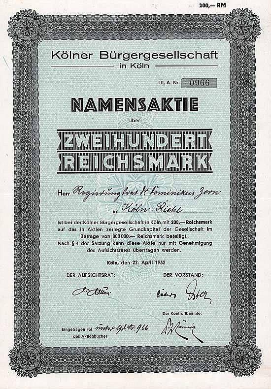 Fondata nel 1863, AG dal 1893. Utilizzo e gestione delle proprietà in Appellhofplatz 28, Burgmauer 31 e Röhrergasse 17a, nonché gestione di un’enoteca. Le proprietà odierne a Unter Goldschmied / Laurenzplatz 9-17 sono costruite con un hotel (la gestione è stata scorporata in Senats Hotel GmbH nel 1959) insieme a un edificio aziendale. Fino ad oggi quotata al mercato aperto di Düsseldorf.