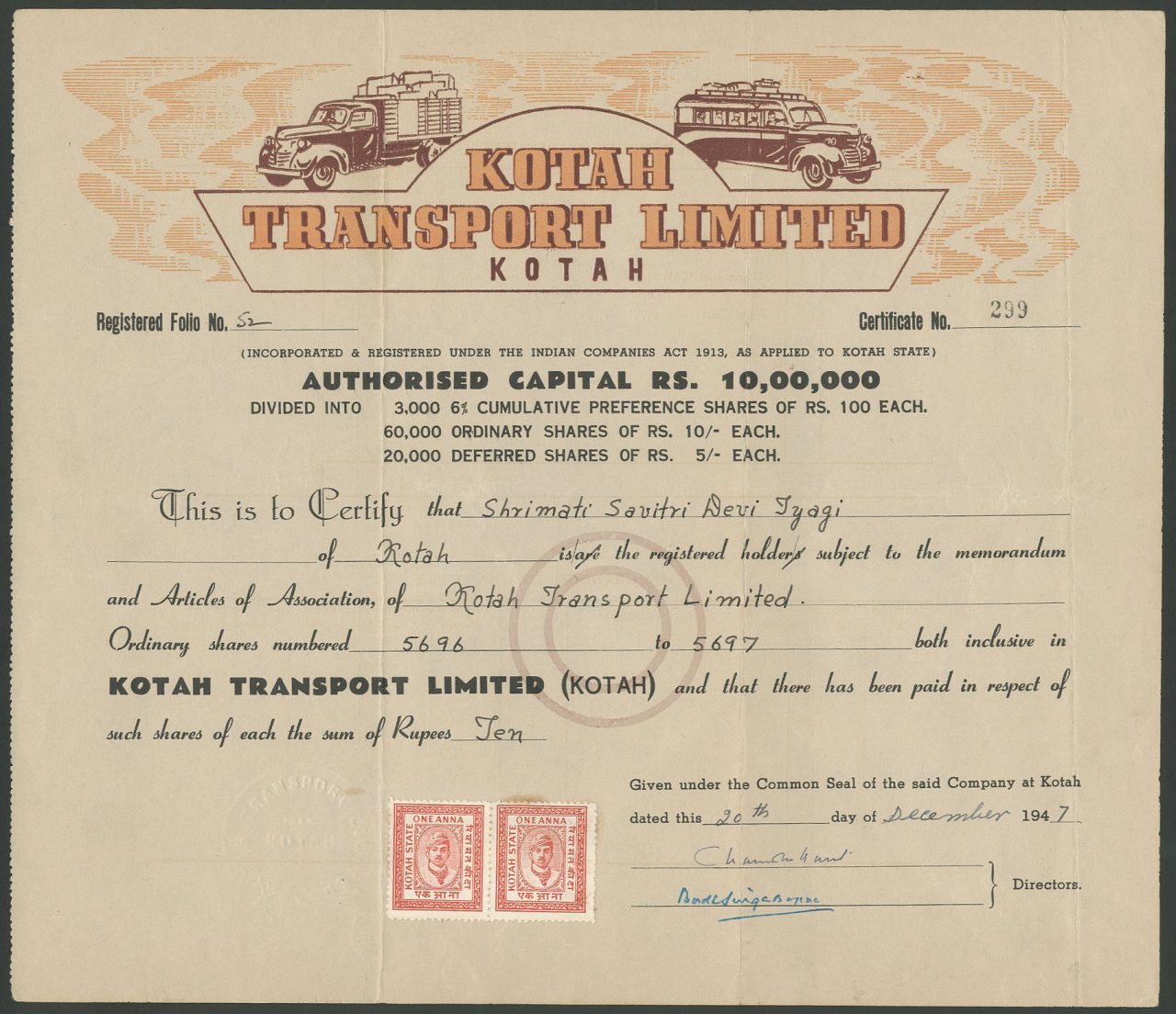 Incorporato ai sensi dell'Indian Companies Act 1913 come applicato allo stato di Kotah.