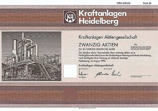 L’azienda è stata fondata nel 1922 con lo scopo di finanziare, costruire e gestire forniture energetiche di ogni tipo; fino al 28 aprile 1926 la sede dell’azienda era a Mannheim. Strutture: centrale idroelettrica Mainaschaff, siti di fabbrica a Pfaffengrund vicino a Heidelberg, locali commerciali a Essen, Heidelberg, Francoforte. Maggiore azionista: Allgemeine Lokal- und Kraftwerke AG, Francoforte (1969 con il 95%). L’azienda opera da alcuni anni come GmbH. Oggi è una società di ingegneria e costruzione di impianti indipendente dal produttore per la protezione antincendio e la tecnologia energetica, impianti industriali, costruzione di condotte, nonché tecnologia elettrica e di misurazione, controllo e regolazione.