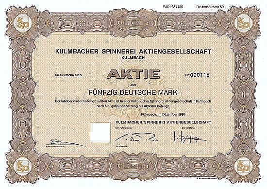 A-71576Kulmbacher Spinnerei AG-1Kulmbach19941 azione da 50 Marchi--