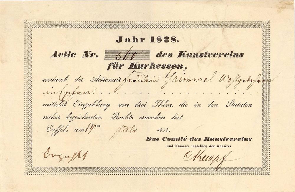 Fondata nel 1835. Le associazioni d’arte, associazioni senza scopo di lucro per la promozione dell’arte contemporanea, sono emerse come le associazioni educative dalla fine del XVIII secolo come espressione della fiducia in se stessi della borghesia in tutta Europa. Scopo delle associazioni d’arte: promozione dell’arte attraverso l’esposizione, l’acquisto, la vendita e la lotteria di oggetti d’arte.