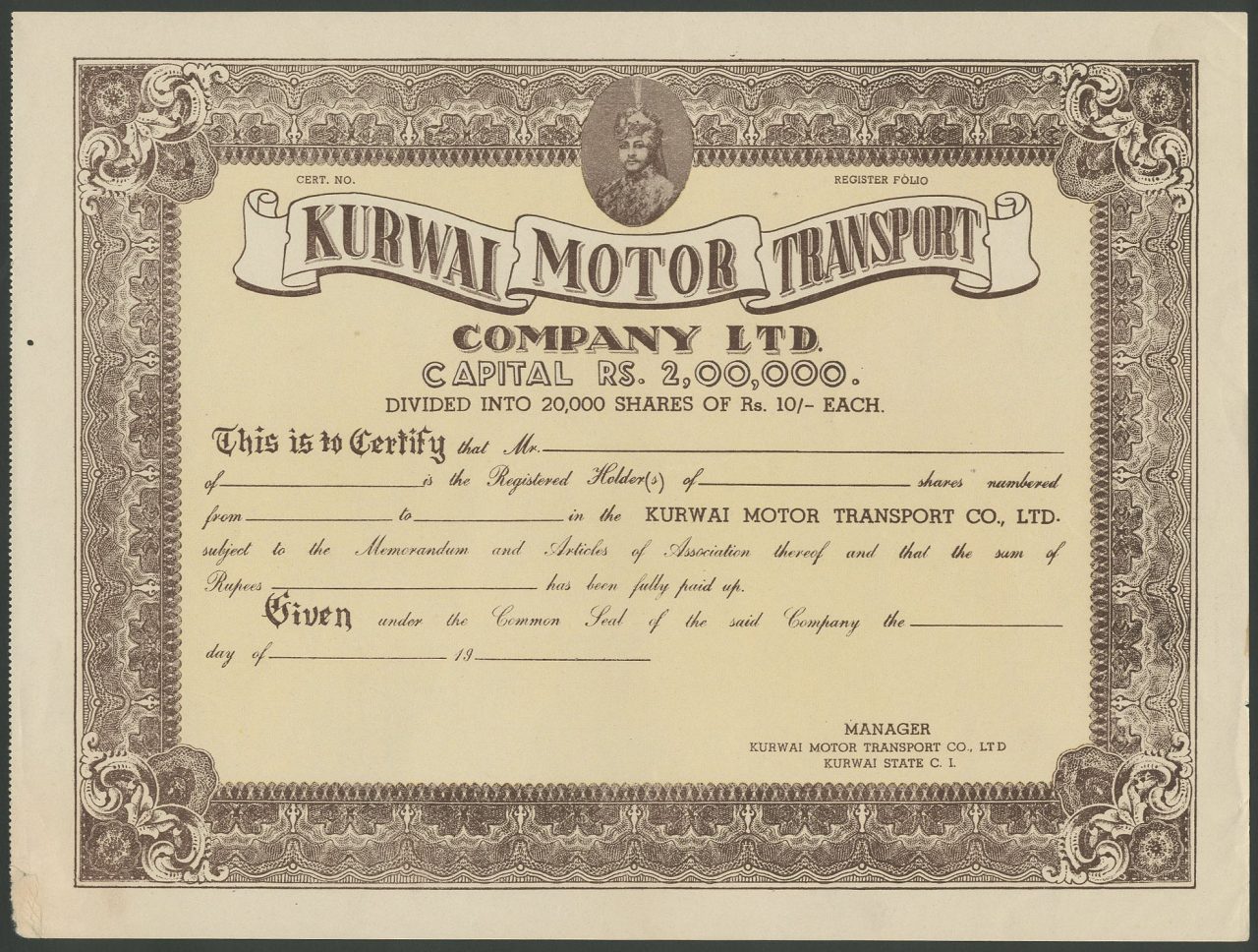 A-43185Kurwai Motor Transport Company Limited-1Princely States1900sharesR1 (Più di 5000 pezzi)S1 (da 0 a 25 €)