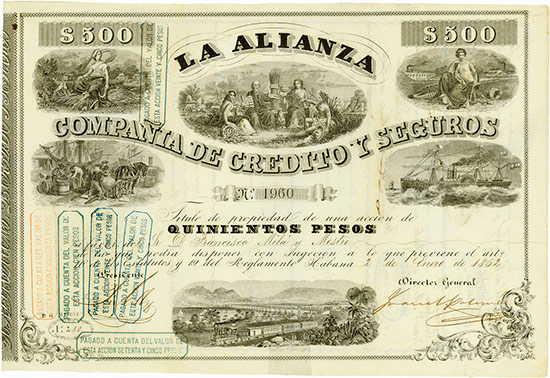 A-31400La Alianza Compañia de Credito y Seguros-1Havana1862Shares of 500 PesosR5 (101-250 pezzi)S4 (da 101 a 250 €)