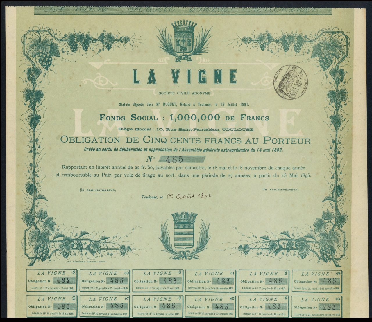 Costituita a Tolosa il 13 luglio 1891. Capitale 1.000.000 di franchi.