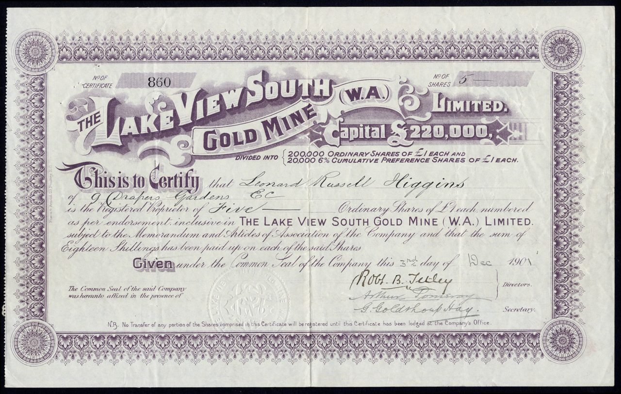 Capitale £ 220.000 in 200.000 azioni ordinarie di £ 1 e 20.000 azioni privilegiate cumulate del 6% di £ 1.