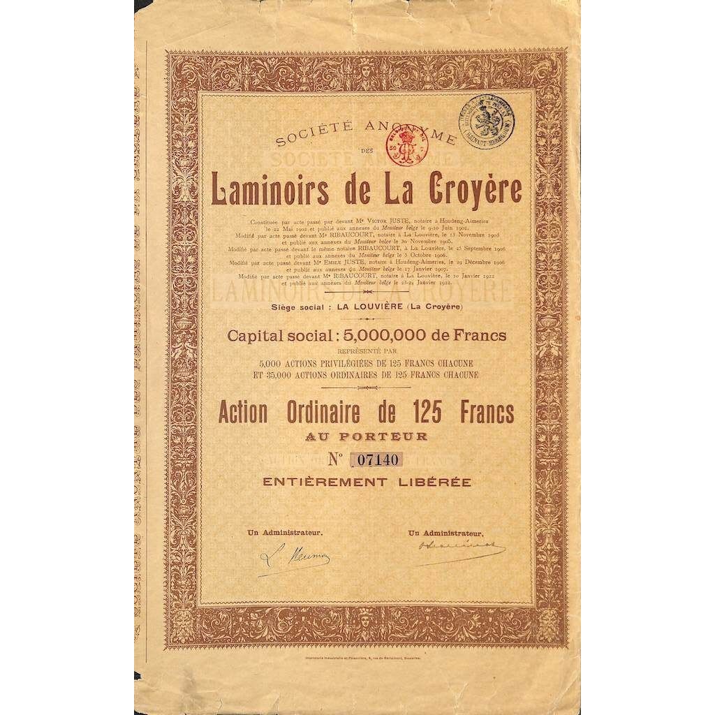 Una azione ordinaria al portatore del valore di 125 Franchi.